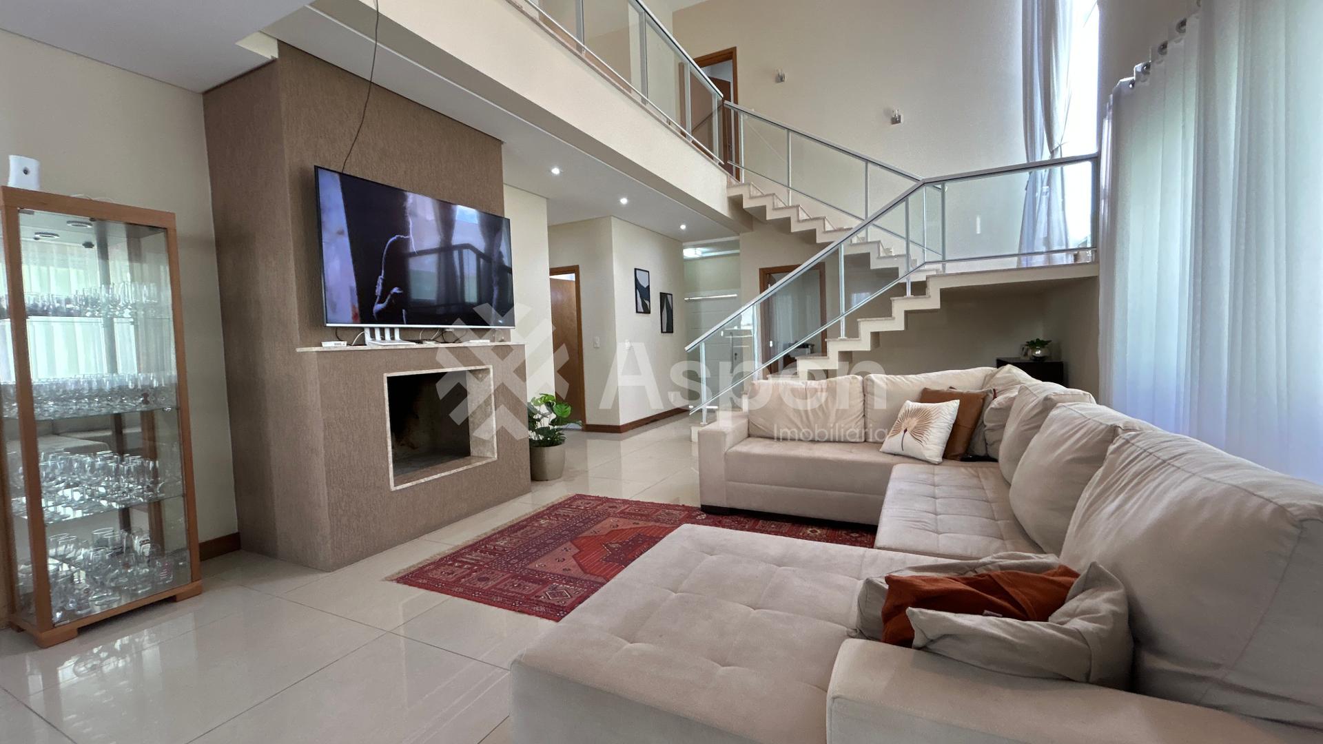 Amplo Espaço e Sofisticação: No primeiro piso, um hall de entrada imponente leva a um escritório e uma sala espaçosa para dois ambientes, sala de jantar e sala de estar com uma charmosa lareira.